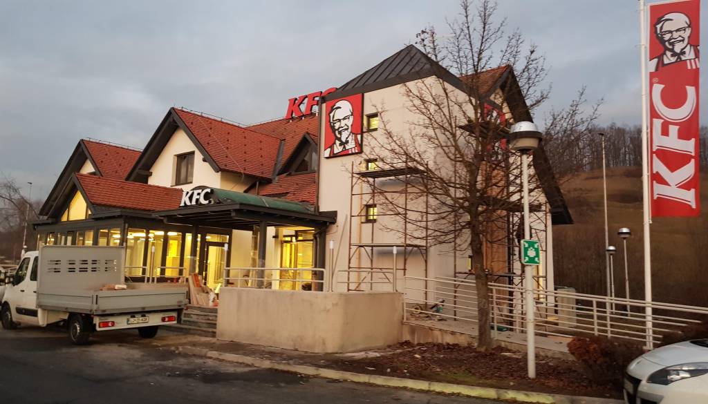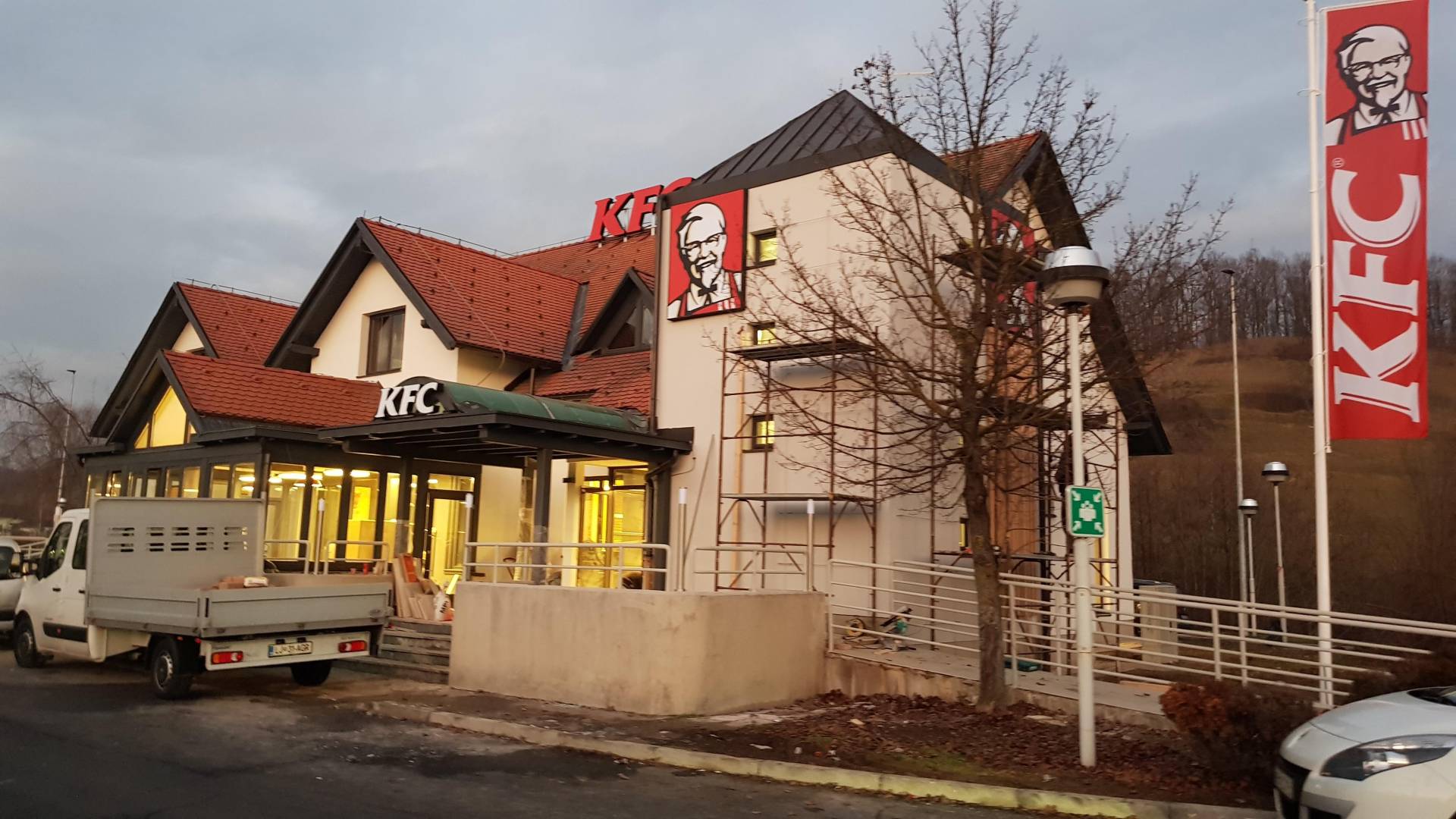 Prva KFC restavracija v Sloveniji bo stala na avtocestnem počivališču Dobrenje vzhod, na odseku Šentilj - Maribor v bližini meje z Avstrijo. A otvoritev je prestavljena na januar.