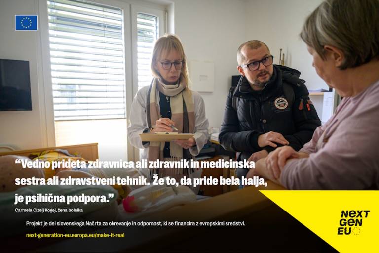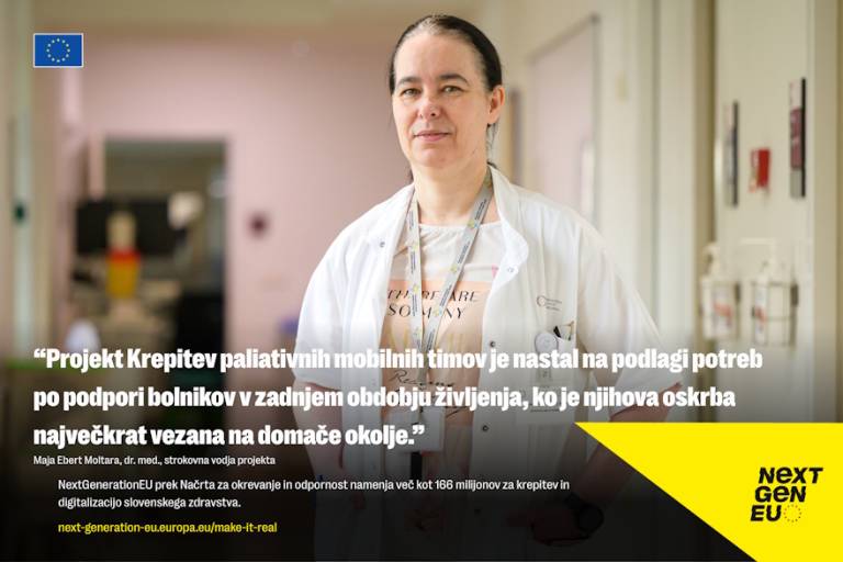 *Projekt Krepitev paliativnih mobilnih timov je del slovenskega Načrta za okrevanje in odpornost, ki se financira z evropskimi sredstvi. NextGenerationEU prek Načrta za okrevanje in odpornost namenja več kot 166 milijonov za krepitev in digitalizacijo slovenskega zdravstva.