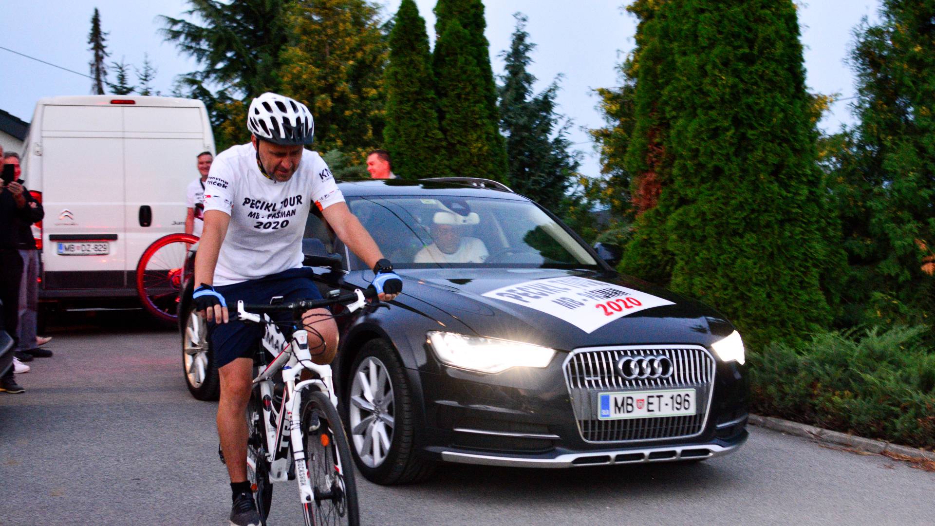 Skupina prijateljev se mu bo na koncu poti pridružila, s kombijem se bodo pripeljali za njim, da bodo zadnjih nekaj kilometrov prekolesarili skupaj.