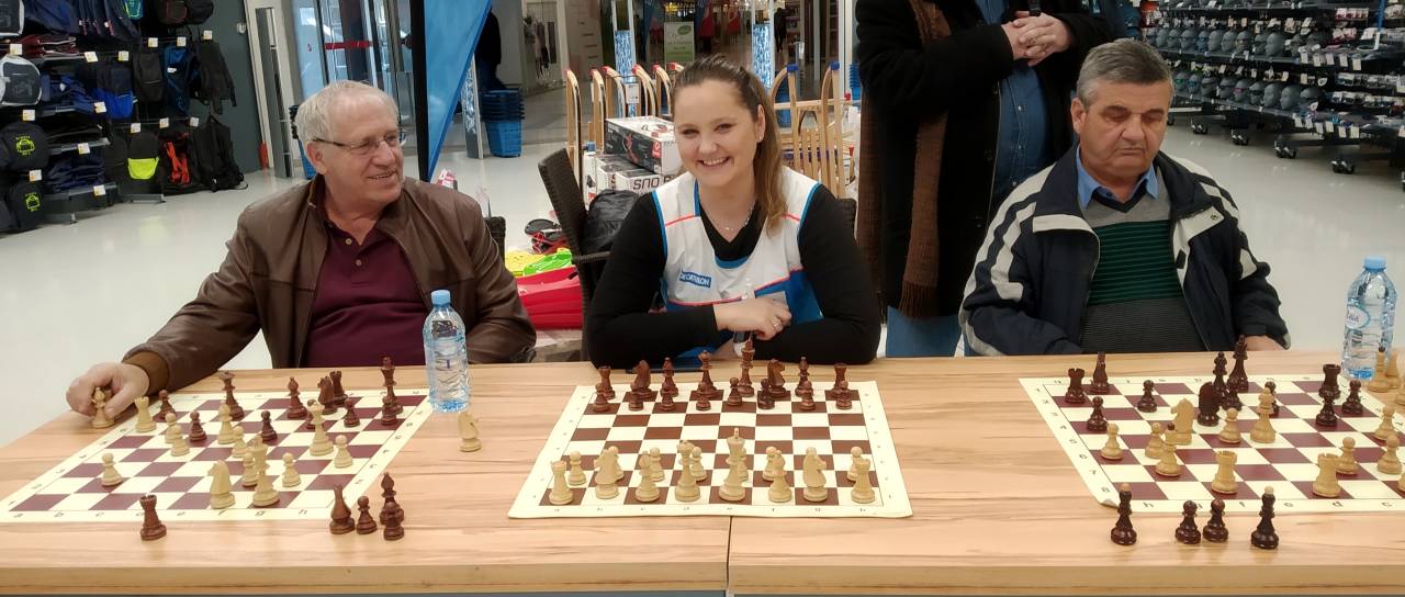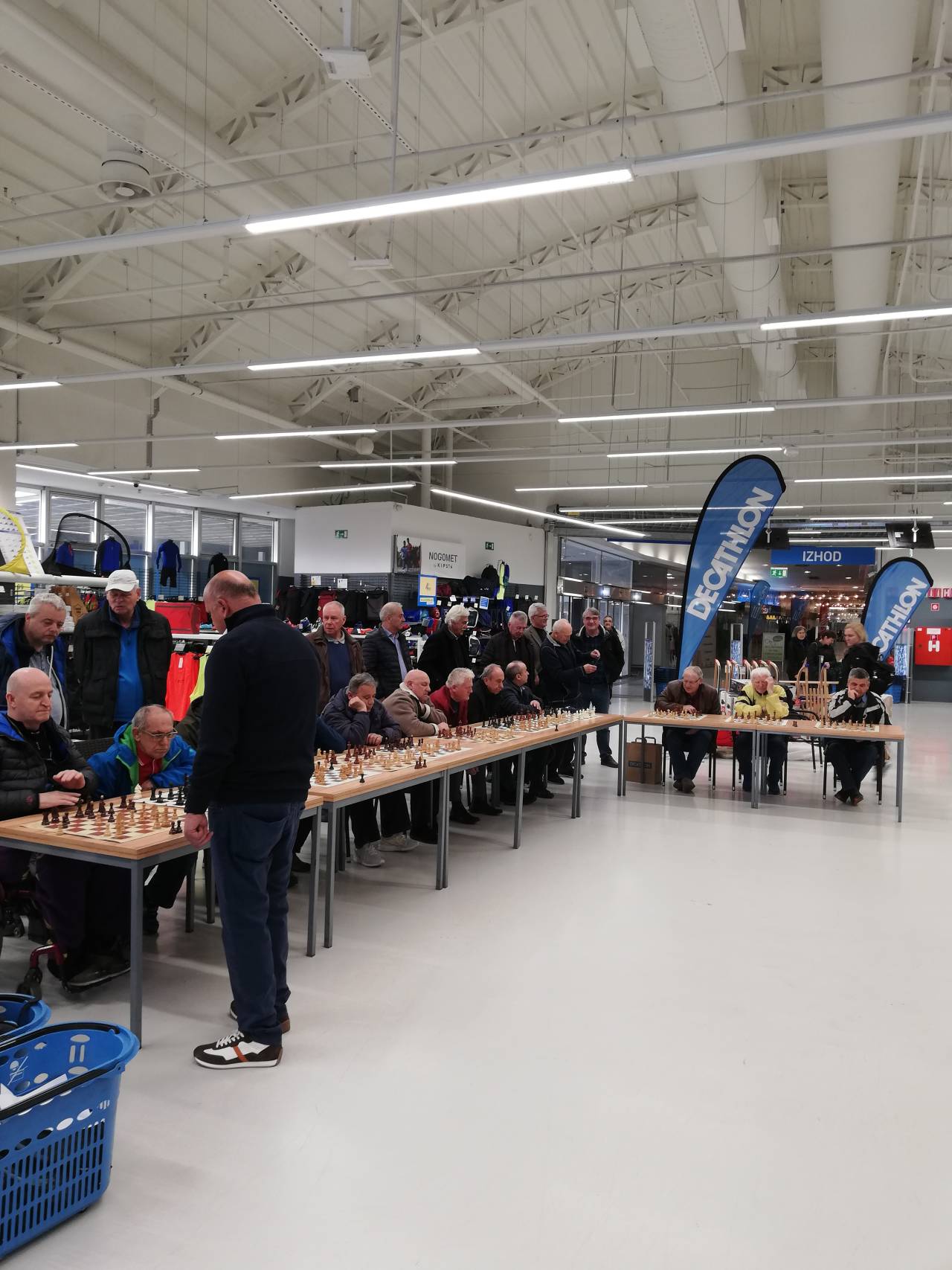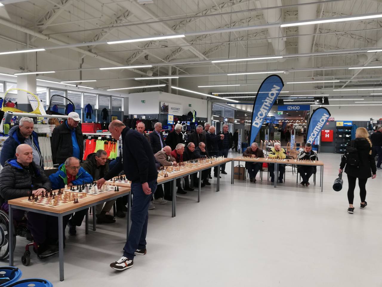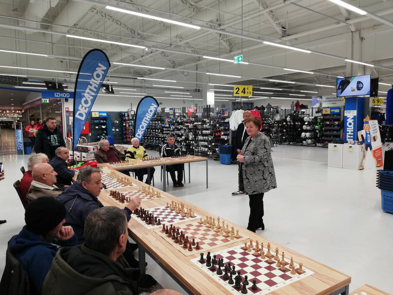 Nakupovanje v poslovalnici Decathlon je v soboto popestrilo razburljivo šahovsko dogajanje.