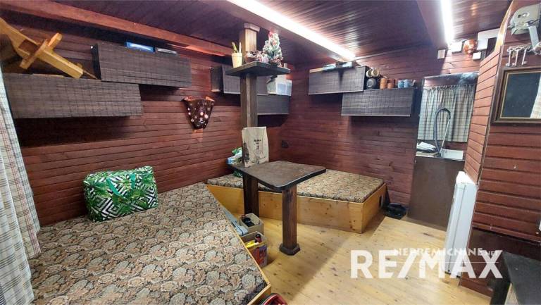 Vikend dopolnjuje terasa, namenjena sprostitvi ob jutranji kavi ali večernem razgledu. Notranjost je preprosto urejena – na voljo sta dve postelji in umivalnik, kar daje prostoru občutek osnovnega udobja. Ogrevanje je urejeno z električnimi radiatorji, dodatno pa udobje v prehodnih obdobjih zagotavlja tudi klimatska naprava. Objekt ima nameščen tudi alarmni sistem.