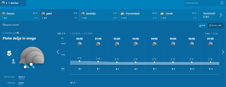 Vremenoslovci opozarjajo, da nas čakajo vremensko zelo pestri dnevi. Tako, če nas bo danes cel dan močil dež, pa lahko že jutri pričakujemo, da bo Maribor pobelil sneg. In ne, ne gre za prvoaprilsko šalo.