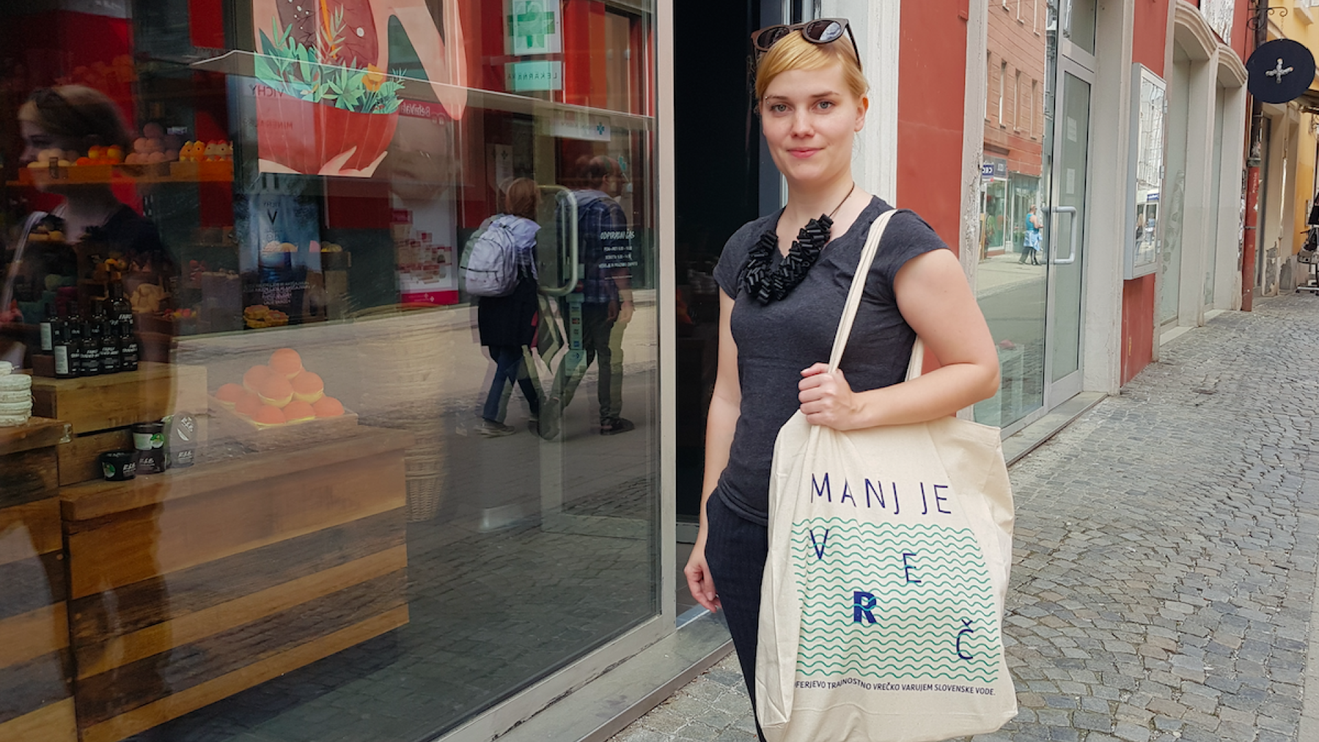 Po nakupih smo se odpravili s Katjo Sreš iz društva Ekologi brez meja, ki nam je pokazala, da se da. Tudi v Mariboru.