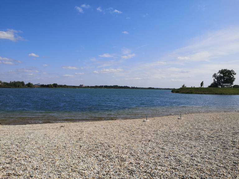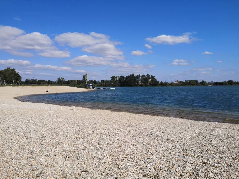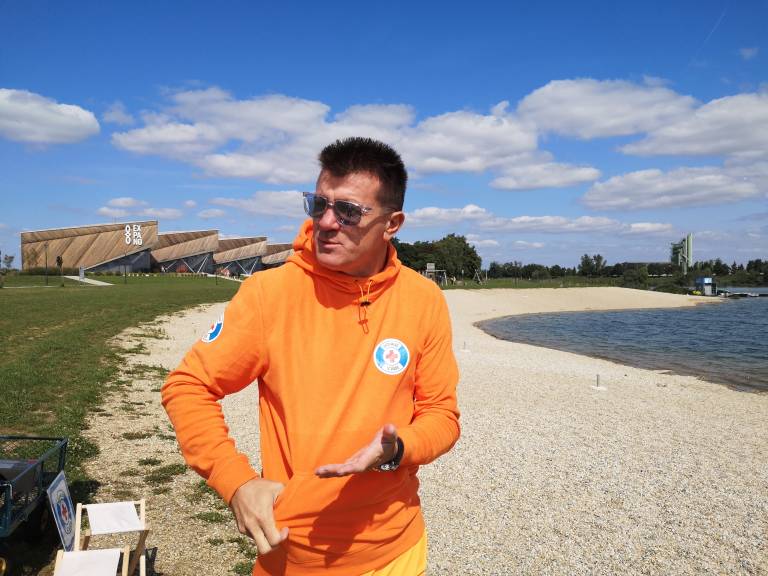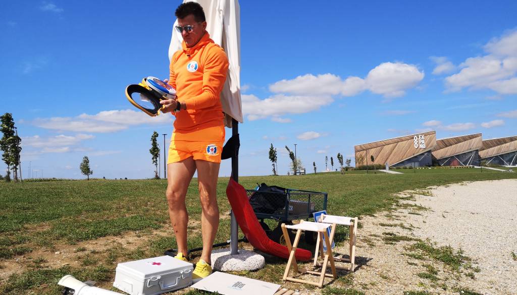 »Vedno znova tudi poudarjamo, da je tukaj kopanje na lastno odgovornost, to jezero zaenkrat še nima statusa kopalne vode, ampak ne glede na to, smo poskrbeli, da je v zadnjih dveh letih, ko je ta lokacija urejena, tukaj reševalec iz vode,« je jasna Helga Lukač, vodja paviljona Expano.