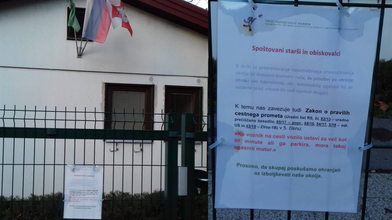 Vrtec Jadvike Golež Maribor je na starše otrok naslovil zanimivo pobudo. »V skrbi za preprečevanje nepotrebnega onesnaževanja okolja, ki dodatno bremeni naše, predvsem pa zdravje otrok, vas naprošamo, da avtomobile ugašate, ko se ustavite pred vrtcem (in tudi kjer koli drugje),« pozivajo starše.