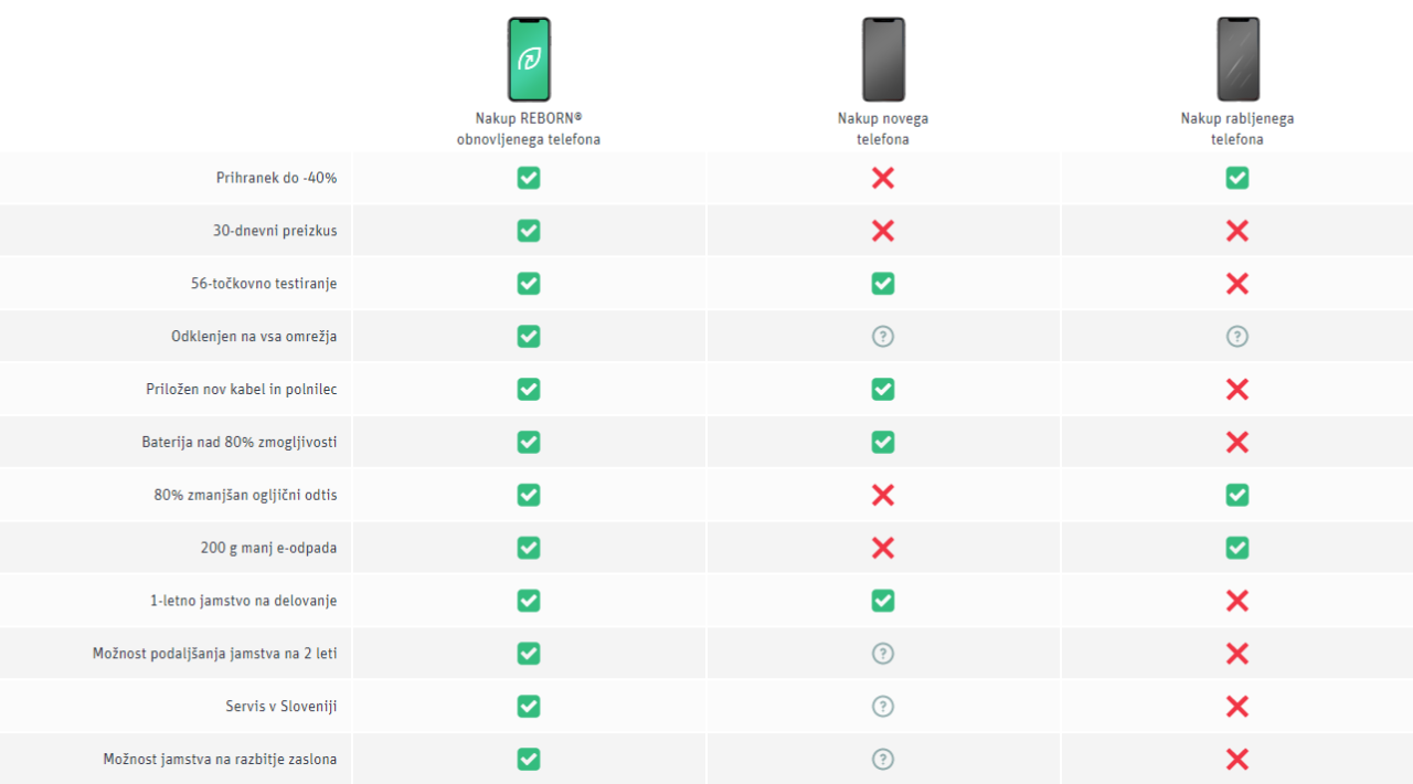 To pomeni, da lahko z nakupom obnovljenega telefona dobite napravo, ki je enako dobra, kot če bi jo kupili v trgovini, vendar brez visoke cene.