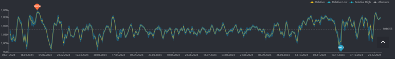 To je približno enako kot vseh pet let do sedaj. Najvišji je bil izmerjen 28. januarja 2024, ob 10.30, in sicer absolutni 996,2 hektopaskala oziroma relativni 1037,4 hektopaskala.
