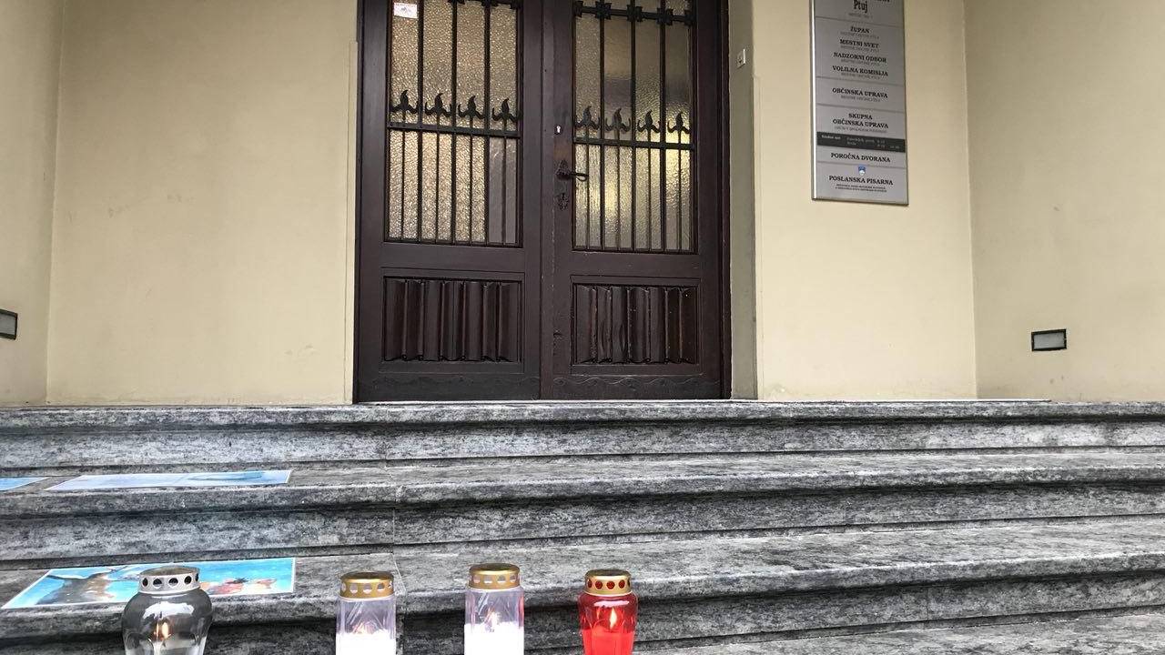 Med podiranjem dreves je padel tudi pano za plakate, ostal pa transparent z načrti za prenovo tržnice. Ta je vredna skoraj 5 milijonov evrov in predvideva zasaditev 14-ih novih dreves. A vseh Ptujčanov načrti niso prepričali, zato so tudi na stopnicah mestne hiše zagorele sveče.