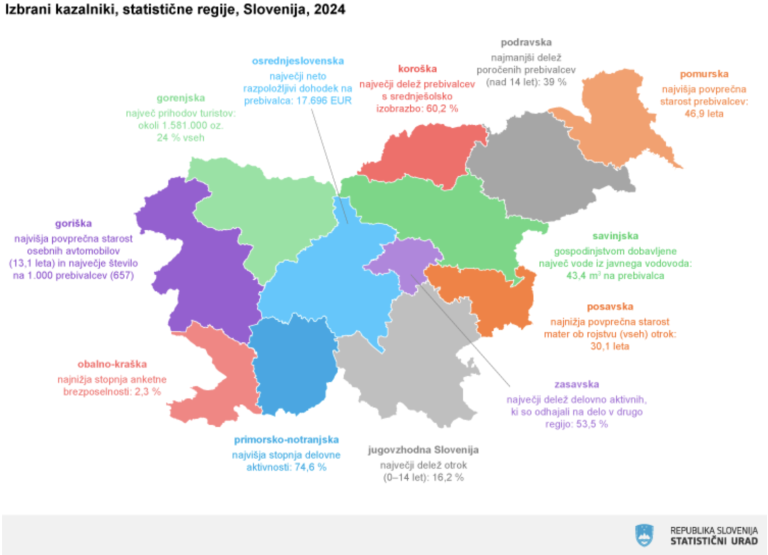 Prebivalci Podravske so bili leta 2024 v povprečju stari 45 let, kar je nekoliko nad slovenskim povprečjem (44,3 leta).