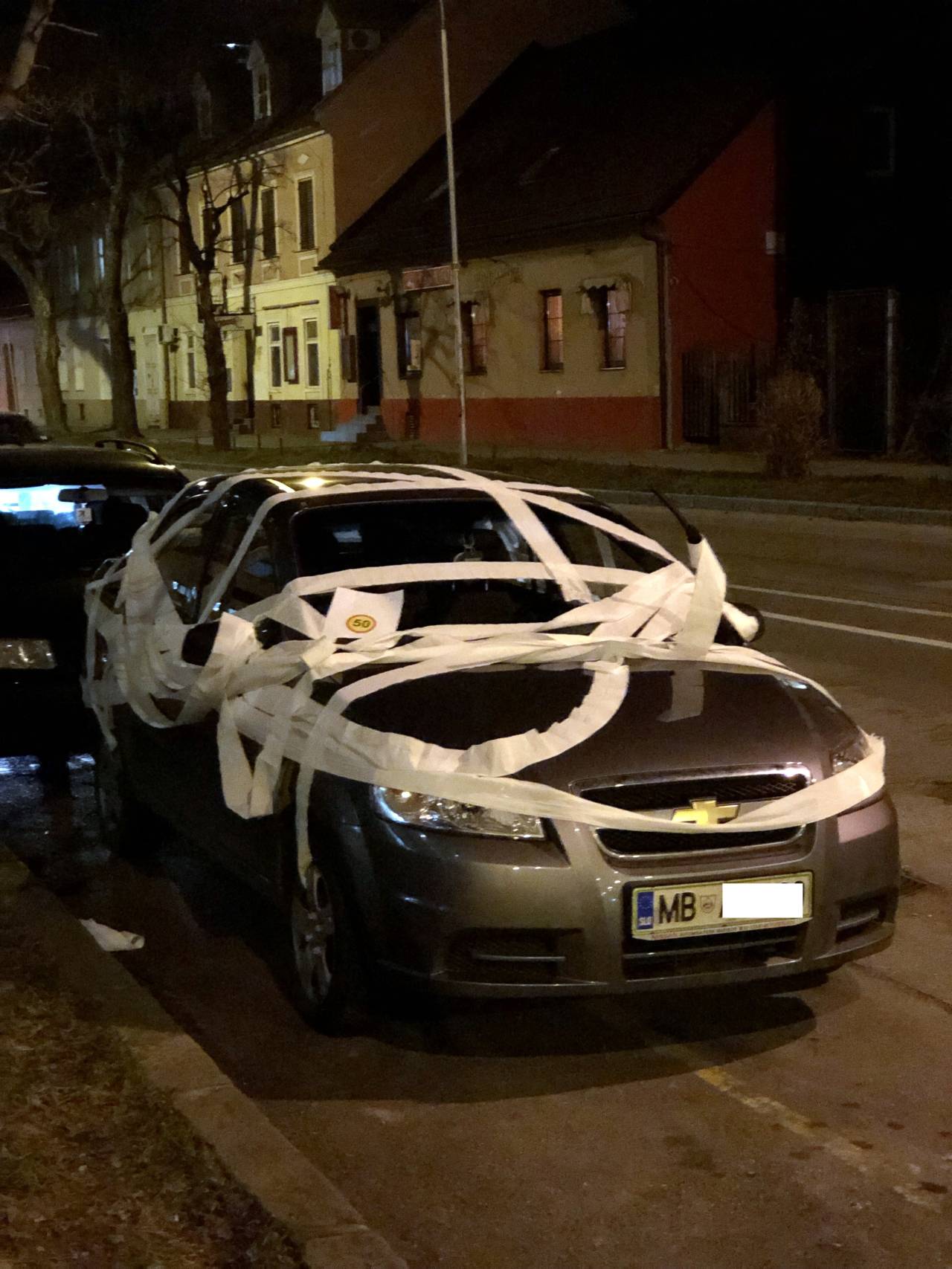 To se je zgodilo tudi Mariborčanki, ki so ji sodelavci avtomobil ovili kar v toaletni papir. Njihova sodelavka je praznovala abrahama, ob zaključku službe pa jo je čakalo še nekaj dodatnega dela.