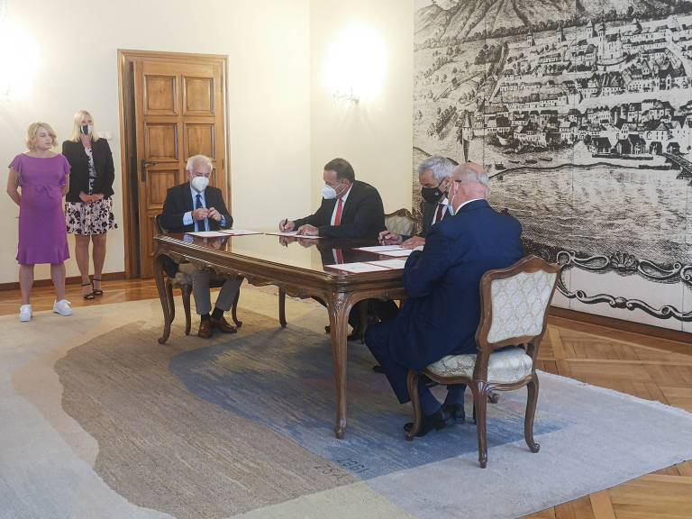 V dvorani Rotovž je potekal slavnostni podpis pogodbe za organizacijo Olimpijskega festivala evropske mladine 2023.