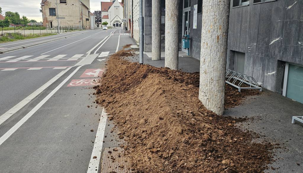 Kot so zapisali, so bili danes, 1. maja 2024, ob 8.02, obveščeni, da je neznanec pred stavbo sodišča v Murski Soboti nasipal zemljo, pomešano z gnojem.