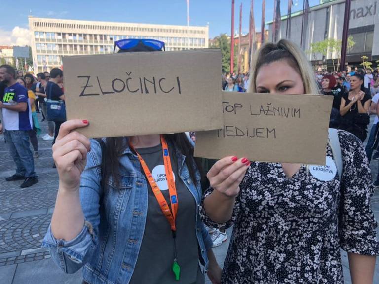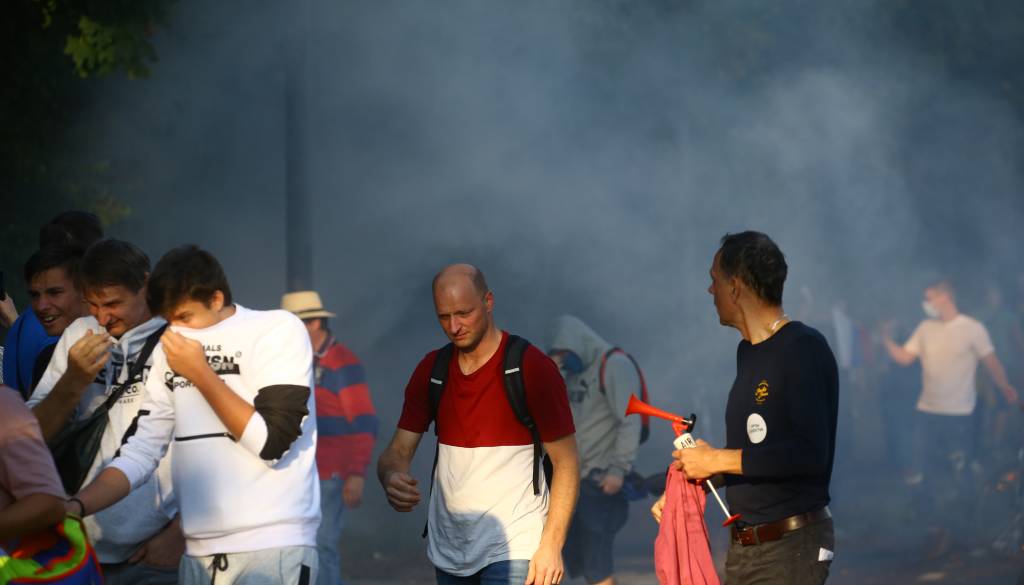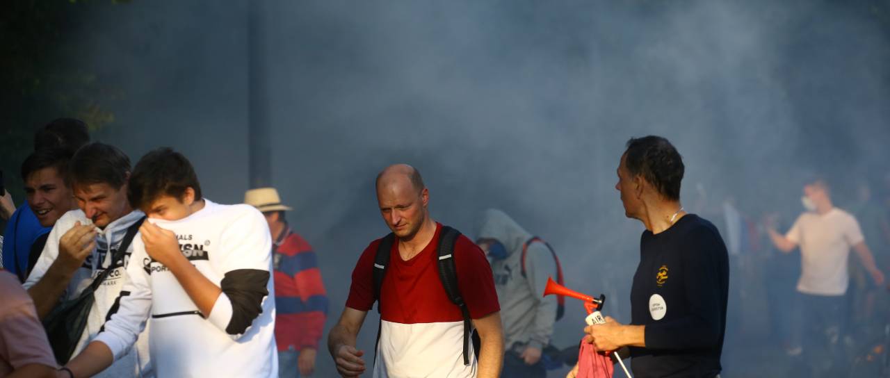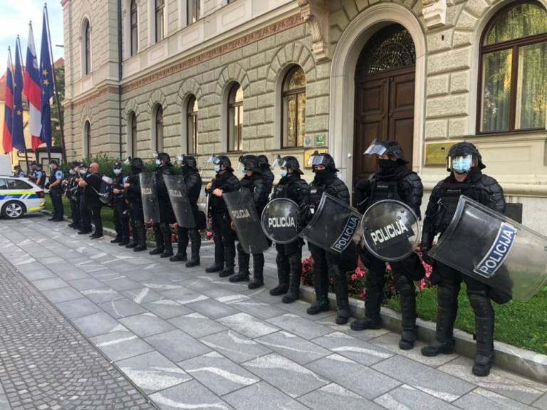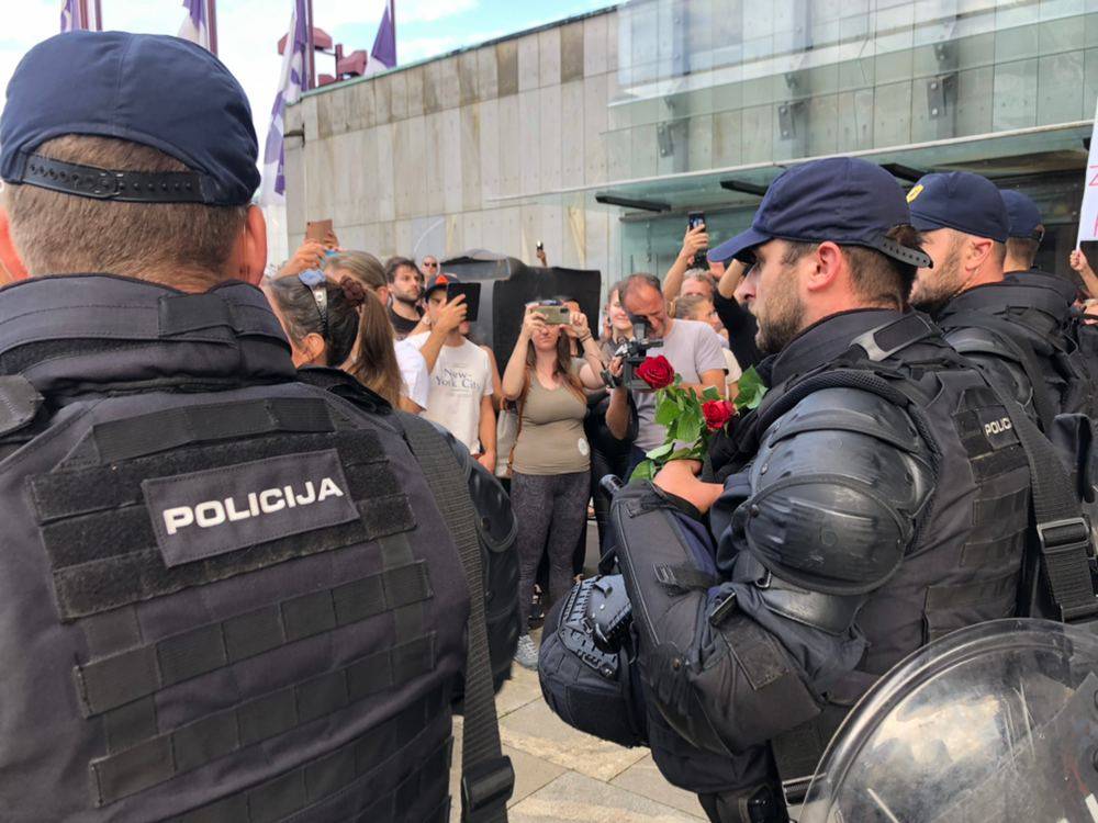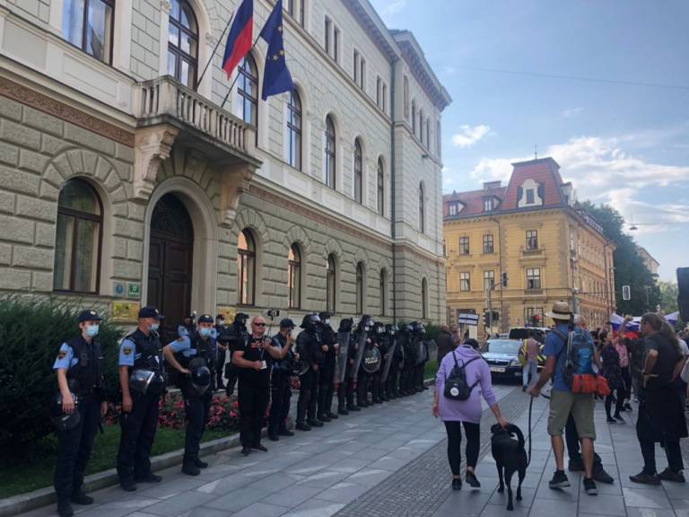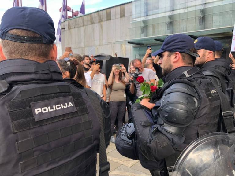 19.40 - Protesti še trajajo. Policija umirja stanje na Trgu republike.