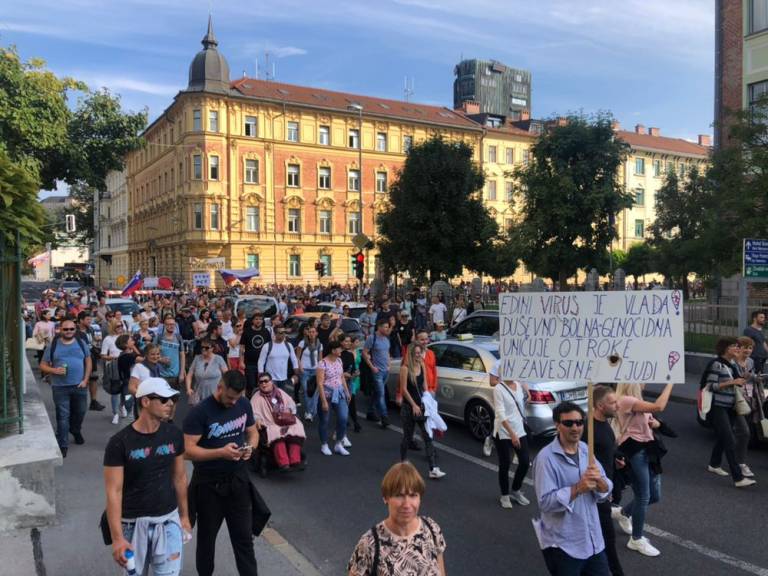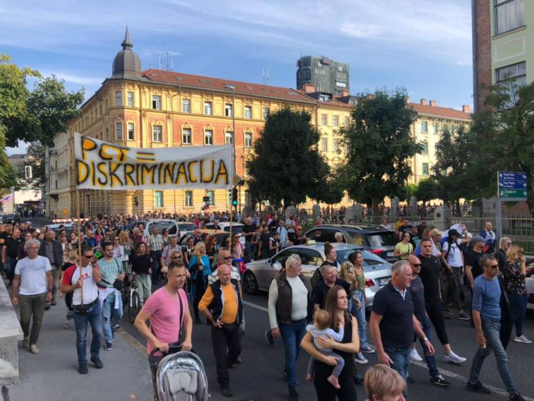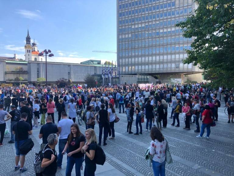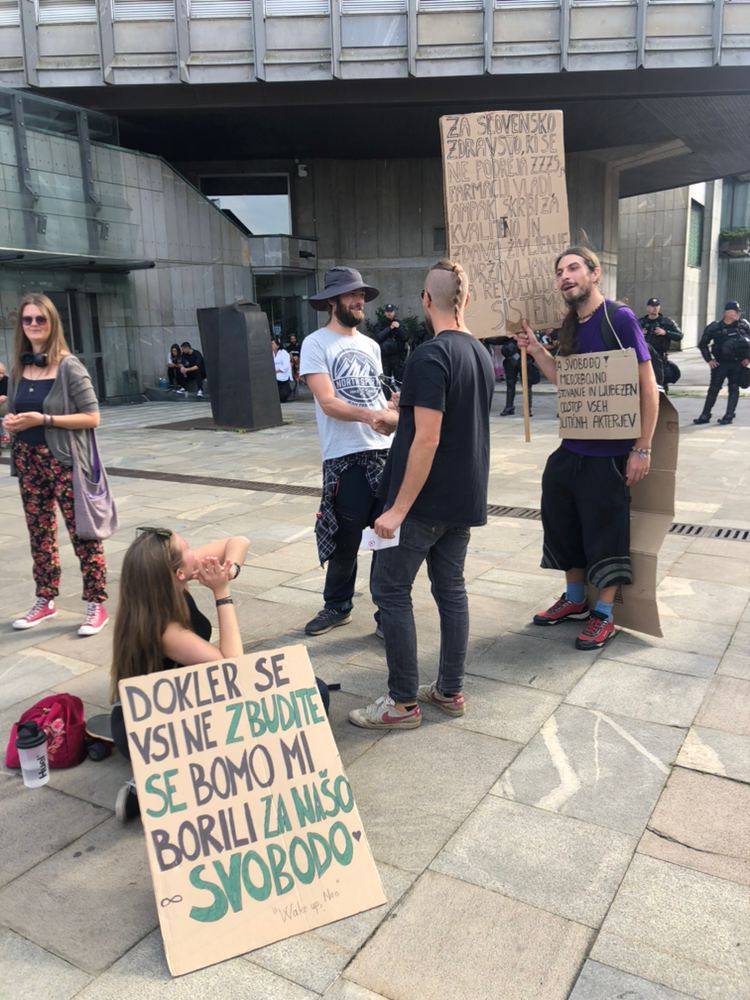 15.00 - Protesta se je udeležil tudi oče 20-letnice, ki je danes v UKC Ljubljana po zdravstvenih zapletih, domnevno povezanih s cepljenjem, umrla, poročajo Slovenske novice. »Želela si je kupiti svobodo. 16. septembra se je cepila s cepivom Janssen, da ne bo omejena z neumnostmi. Danes je ni več. Stara je bila 20 let. Ko prideš na cepilno mesto, te nihče ne opozori na možne zaplete. Samo številke so. Govori se o odstotkih. Moja Katja ni bila odstotek. Bila je Katja. Moja Katja,« je po poročanju Slovenskih novic dejal njen oče. Protestniki so nato vzklikali: »Morilci!« še poročajo.