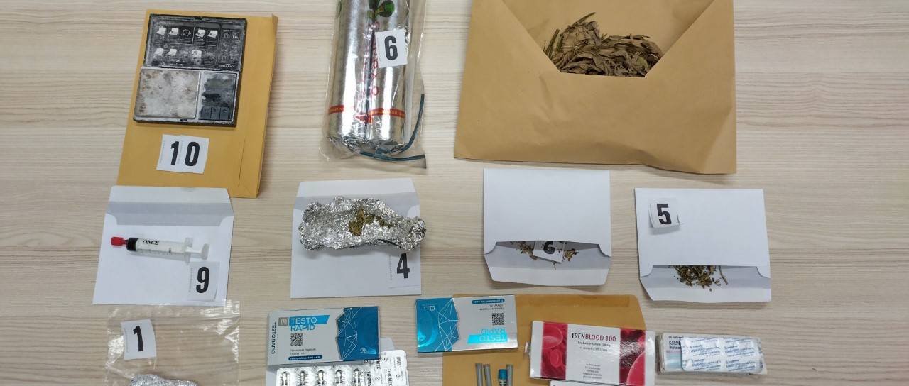 V hišni preiskavi so našli in zasegli manjšo količino prepovedanih drog kokaina in konoplje ter več različnih nedovoljenih tablet in ampul z nedovoljenimi snovmi.