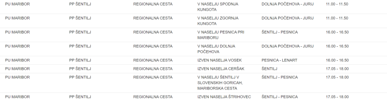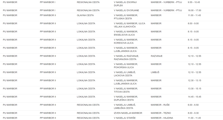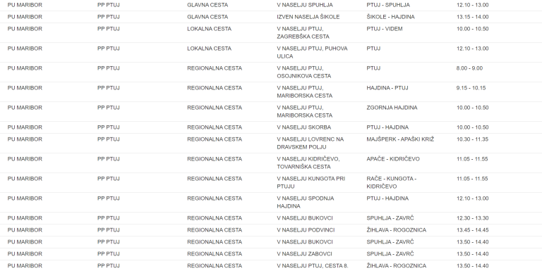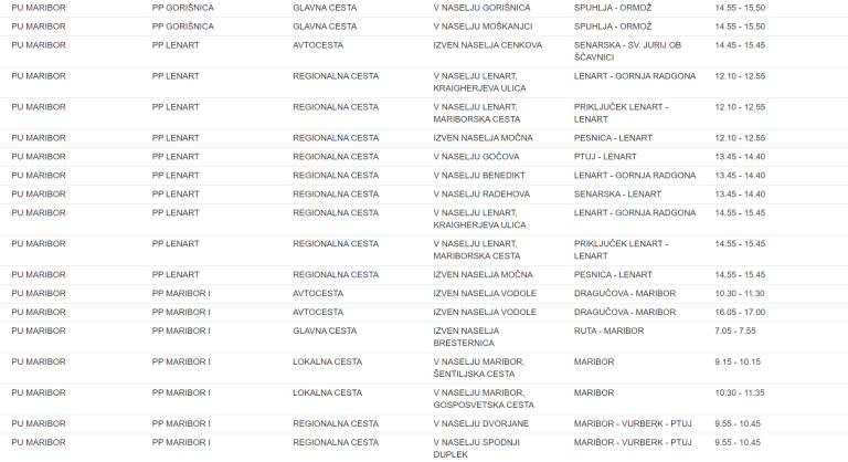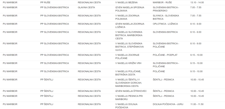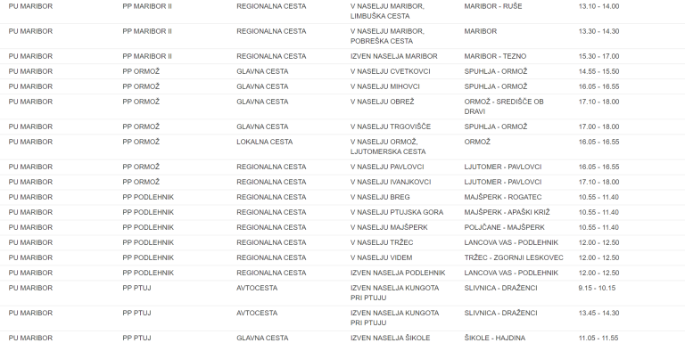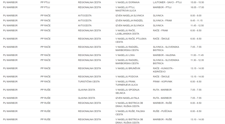 To je seznam lokacij na območju Policijske uprave Maribor, kjer bodo policisti merili hitrost: