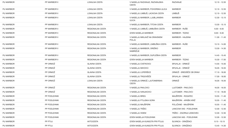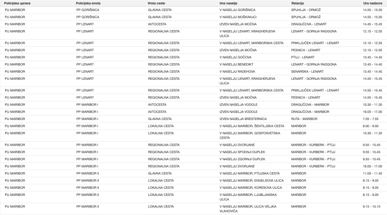 Meritve bodo potekale tudi na 116 lokacijah Policijske uprave Maribor.