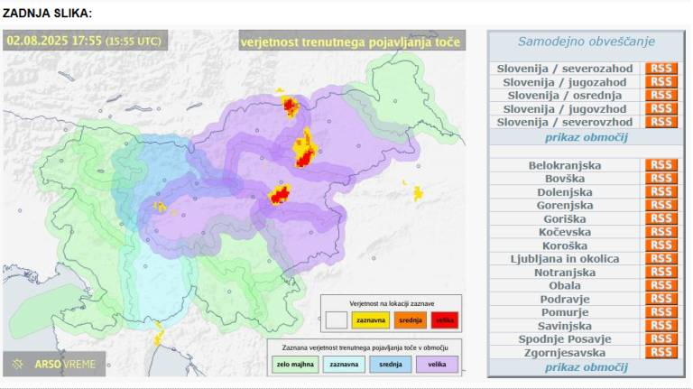 V več regijah zelo velika verjetnost toče. Po določenih krajih že klestila toča.