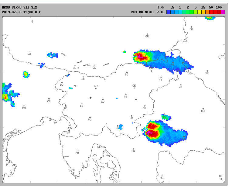 Na avstrijskem Štajerskem je nastala močna nevihta, ki se počasi pomika v smeri Pohorja in Maribora. Nevihto v centru spremlja debela toča.