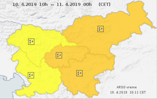 Pojav lokalnih hudourniških razlivanj in poplav je najverjetnejši v porečju Krke, a možen tudi drugod v osrednji in vzhodni Sloveniji. Tako pa napovedujejo meteorologi tudi za četrtek.
