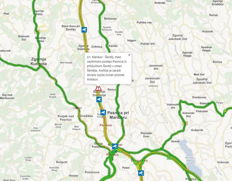 Na Štajerski avtocesti je zaradi med cestninsko postajo Pesnica in priključkom Šentilj v smeri Šentilja, Avstrija je zaradi okvare avtobusa oviran promet, poroča prometno-informacijski center.