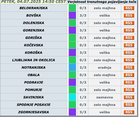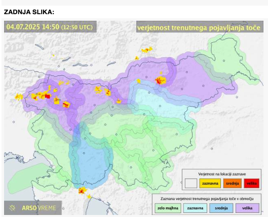 Gibajo se od severa proti jugu, možni bodo sunki vetra, pogosti udari strel in lokalna toča. Na določenih območjih velja 1. stopnja vremenske ogroženosti.