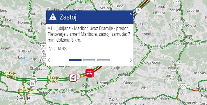 Na štajerski avtocesti je pri priključku Dramlje proti Mariboru prišlo do prometne nesreče, zaradi katere je cesta zaprta. Za osebna vozila je urejen obvoz po regionalnih cestah: Celje – Vojnik – Slovenske Konjice ali Celje – Proseniško – Ponikva – Loče – Tepanje.