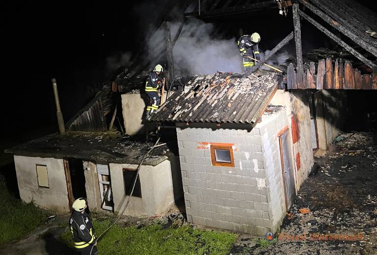 »Ob 1.45 smo bili aktivirani, da gori gospodarsko poslopje. Ko smo prišli na kraj, je bil ogenj popolnoma razvit. Začeli smo z gašenjem,« pravi Primož Krajnc, vodja intervencije Prostovoljnega gasilskega društva Tepanje.