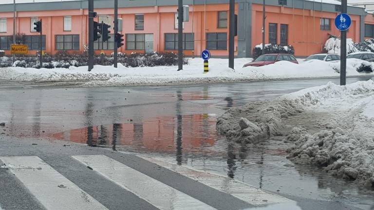 Ker je ob cestah precej napluženega snega, so marsikje zamašeni kanalizacijski odtoki, zato bo ponekod zastajala voda in poplavljala dele cestišč.