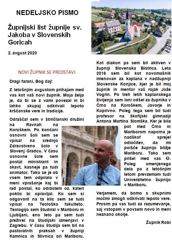 Robi Sekavčnik, upravitelj župnij Črna, Javorje in Koprivna, je razrešen uprave teh župnij in imenovan za upravitelja župnije Sv. Jakob v Slovenskih goricah in za upravitelja Univerzitetne župnije v Mariboru.