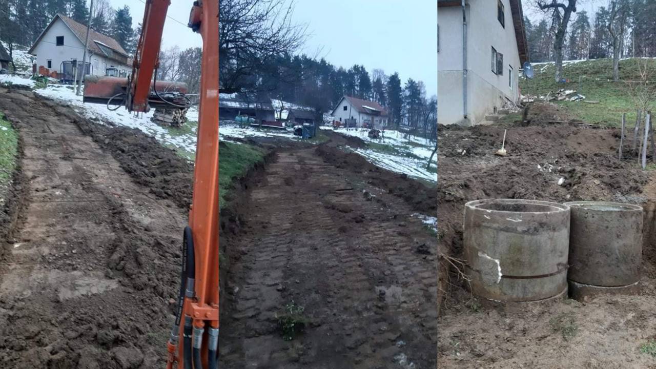 Dela za ureditev kopalnice so se že začela, pomagala je tudi družina s sorodniki. Kopati so začeli še kanal za odtoke in greznico. Radi bi uredil tudi vetrolov, saj pozimi hladen zrak vdira v notranjost.