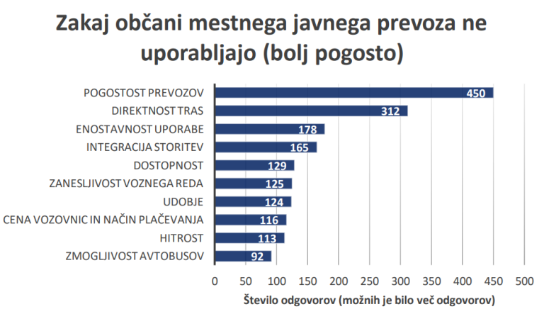 Ključni izzivi za bolj pogosto uporabo javnega prevoza Mariborčanov pa so tudi direktnost tras avtobusov, enostavnost uporabe, integracija storitev, njegova dostopnost, udobje, cena vozovnic in način plačevanja, hitrost in ne nazadnje zanesljivost voznega reda.