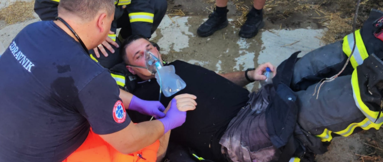 »Med gašenjem se je spodaj pri štabu zgrudil eden od gasilcev, ki je pred tem končal gašenje, in je bil že nekaj časa v nezavesti.
