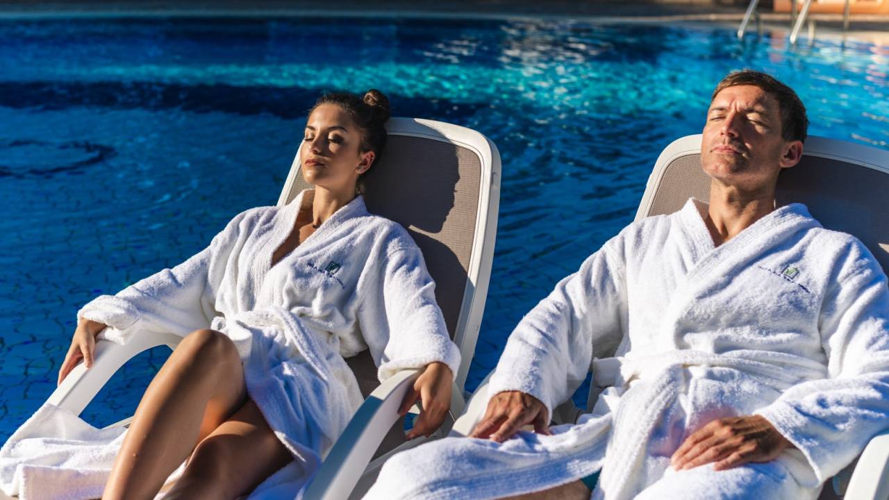 Skočite in se potopite med mehurčke sveže termalne vode, notranjega in zunanjega bazena. Občutek drobnih tisočerih kapljic na telesu, se zagotovo še kako prilega ob prijetnih poletnih temperaturah. Za večji zdravilni učinek pa je potrebnih le dvajset minut sproščenega namakanja v eni izmed marmornih kopeli.
