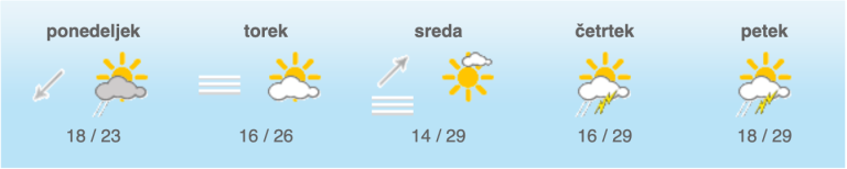 Najvišje dnevne temperature bodo od 19 do 24, na Primorskem do 28 stopinj Celzija. Na Primorskem bo pihala šibka burja, napovedujejo državni meteorologi.