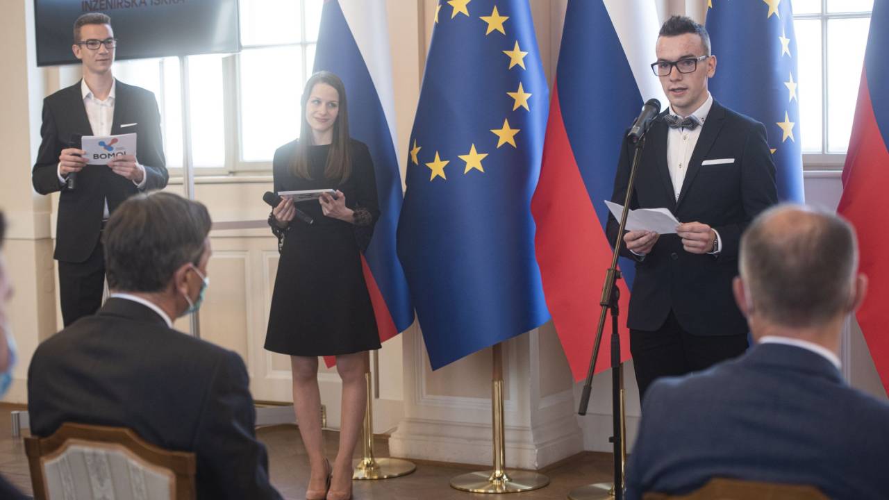 To so mladi in perspektivni prejemniki Inženirskih isker 2020, ki jih je sprejel predsednik republike Borut Pahor.