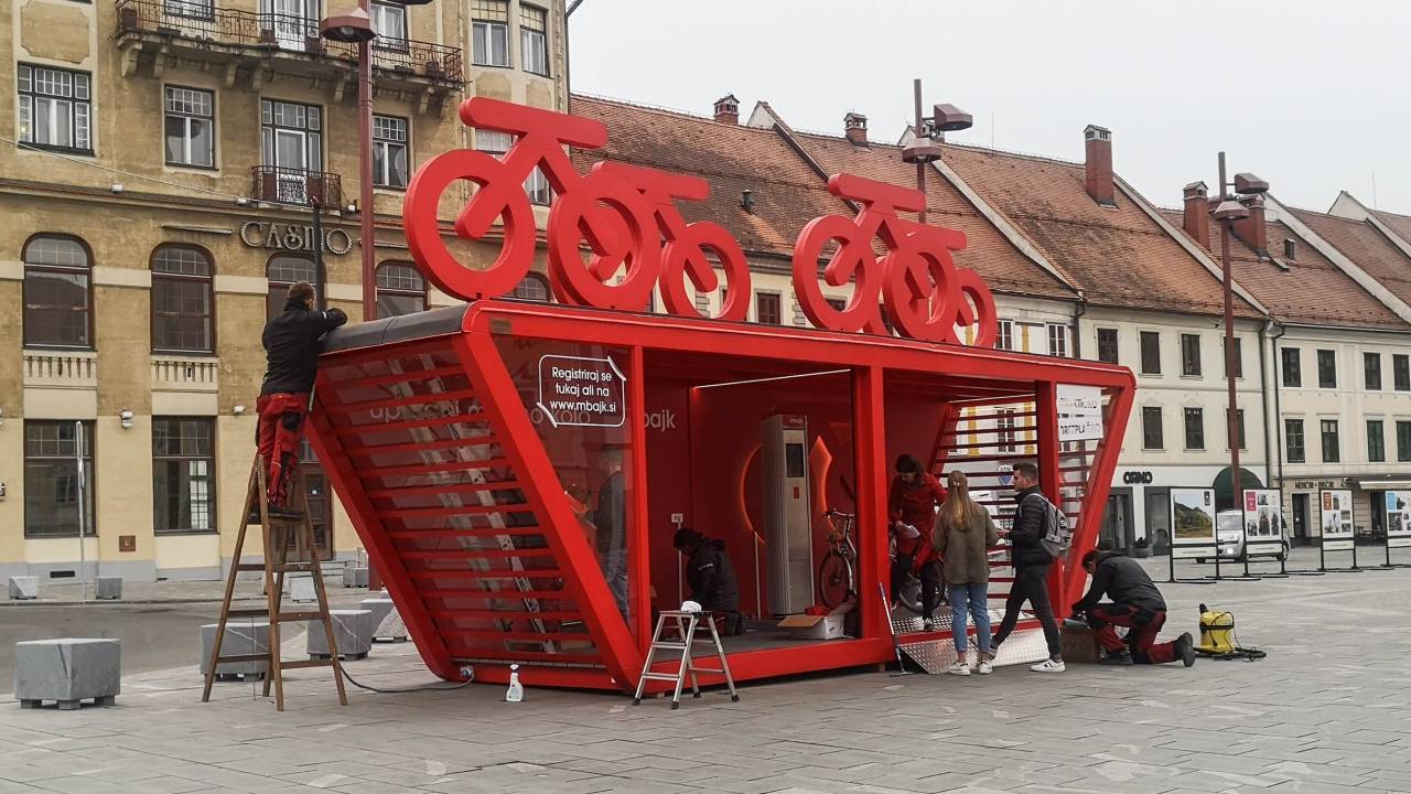 Zadnje tedne tako po Mariboru potekajo gradbena dela, s katerimi vzpostavljajo kolesarske postaje, na Glavnem trgu pa so nedavno postavili veliki rdeči zabojnik, ki naznanja prihod MBajka v mesto.