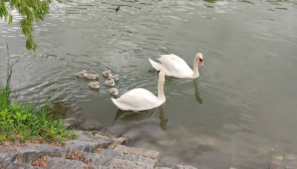 Mariborskemu labodjemu paru, ki že tradicionalno gnezdi ob restavraciji na Lentu, se je po več kot mesecu dni čakanja v teh dneh izvalilo sedem malih puhastih kepic.