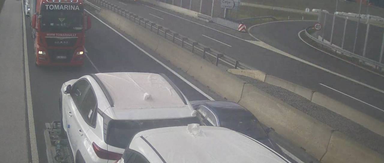 Na štajerski avtocesti je nastal daljši zastoj tovornih vozil pred delovno zaporo, med Celjem zahod in Dramljami proti Mariboru.