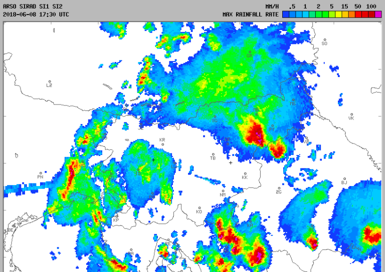 Razpršene nevihtne celice so se združile v eno močnejšo celico, ki sedaj potuje proti severu proti Slovenski Bistrici in naprej proti Mariboru, opozarjajo vremenoslovci iz Neurje.si. S strani Agencije Republike Slovenije za okolje je izdan rdeč alarm za celotno Podravje.