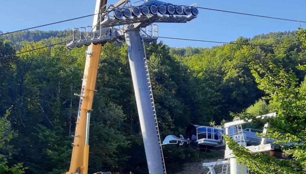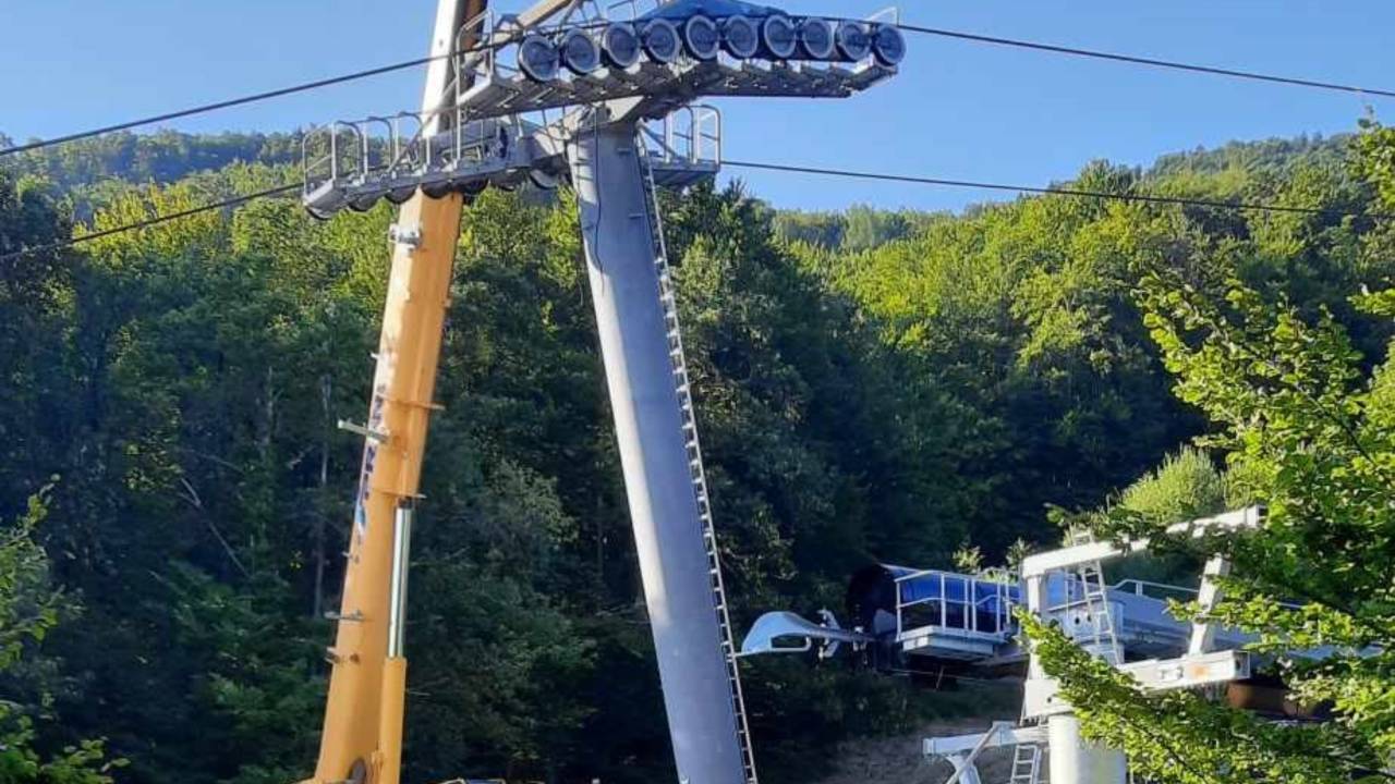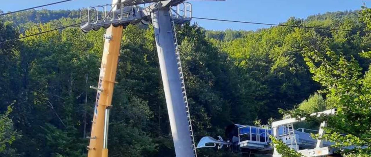 Kako napreduje izgradnja vmesne postaje? Trenutno je na vmesni postaji v teku demontaža stebrov 7 in 8, med katero bo sneta jeklenica žičnice, sledila pa bo postavitev novih stebrov.