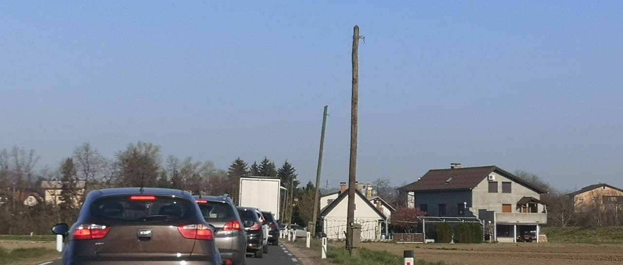 V Dogošah je prišlo do prometne nesreče, kolona avtomobilov ovira promet.