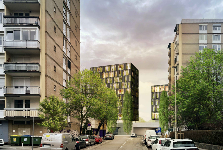 Vzdolž južne in vzhodne stranice osnovnega objekta je načrtovan niz raznolikih stavb, ki so namenjene stanovanjski oziroma poslovni rabi. Stanovanjski oziroma poslovni del je pozicioniran nad komercialnim delom.