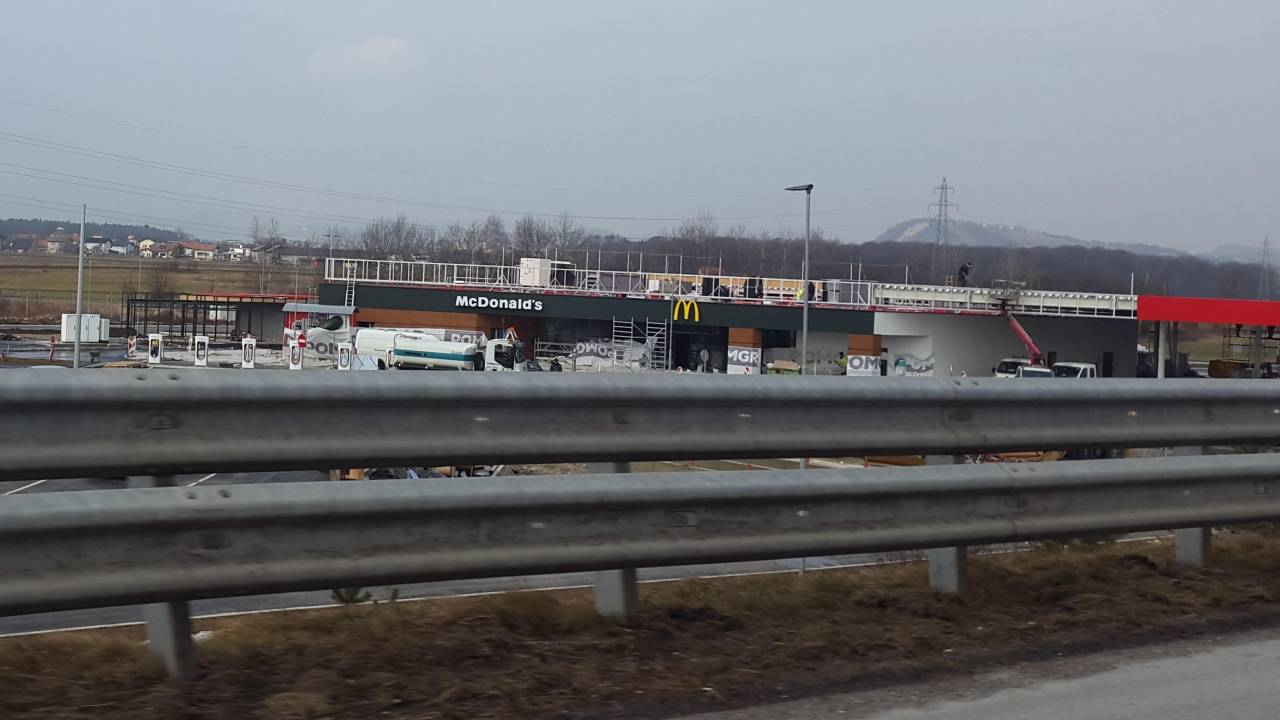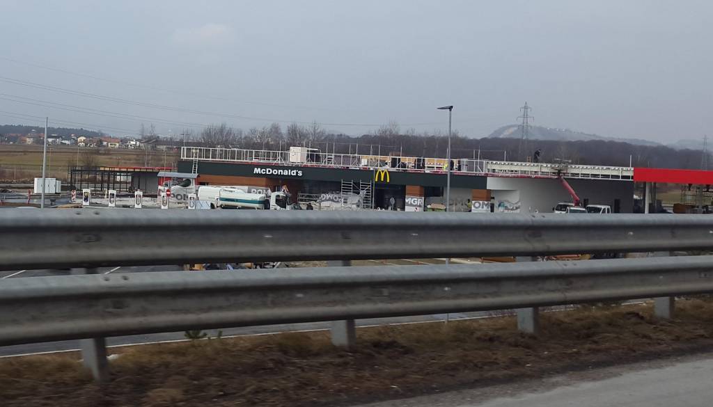 Ob Petrolovem bencinskem servisu bo zrasla samopostrežna restavracija. Na stavbi že visi napis McDonald's z velikim rumenim M-jem.