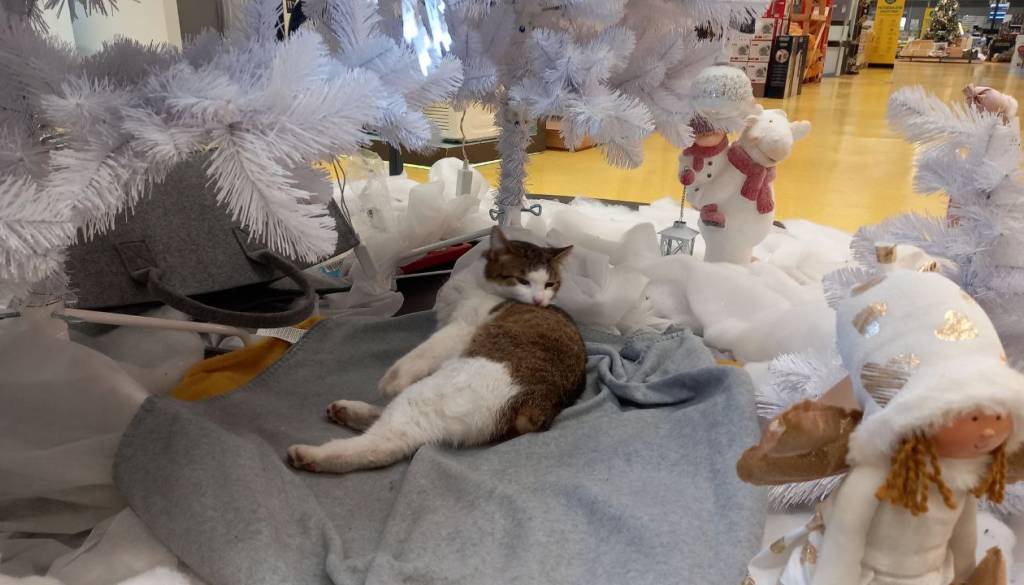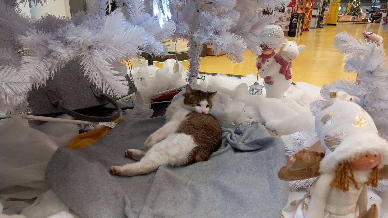 V trgovskem vrvežu sredi mariborske trgovine je toplo zavetje pred šestimi meseci našla muca.