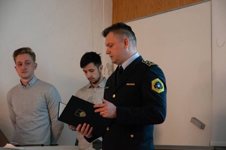 Nagrajencem je čestital še Donald Rus, direktor Policijske uprave Maribor, in izpostavil, da je zelo vesel, da imajo mladi možnost, da s svojimi kreativnimi idejami pozitivno vplivajo na svoje sovrstnike, k čemer stremi tudi slovenska policija.