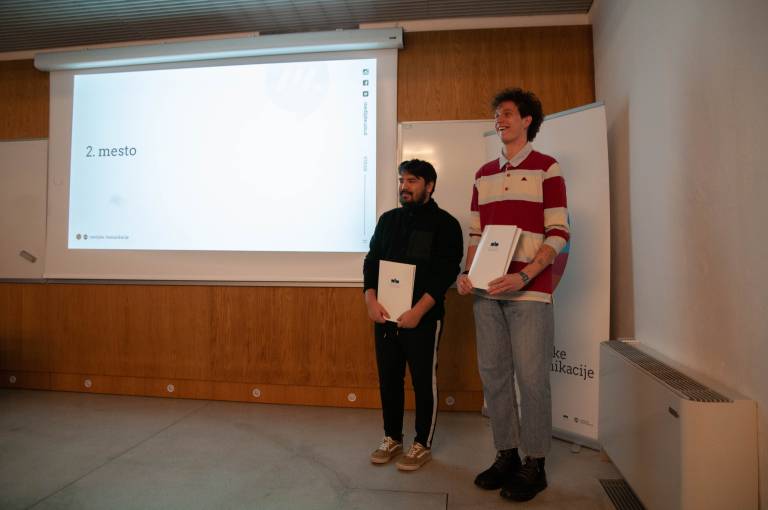 Drugo mesto sta zasedla Jure Kodrič in Žan Zafošnik, ki sta s svojim projektom Nasilje ni igra opozarjala na medvrstniško nasilje.