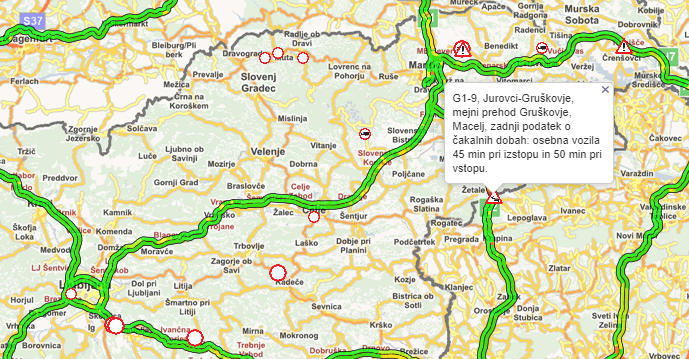 Na mejnem prehodu Gruškovje je po zadnjih podatkih Prometno-informacijskega centra za državne ceste čakalna doba: osebna vozila čakajo pri izstopu 45 minut in pri vstopu 50 minut. Čakalna doba naj bi bila tudi na mejnem prehodu Obrežje.