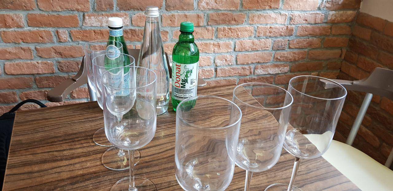 Huber nam je pripravil degustacijo treh mineralnih vod; njegovo Cano, Donat in mineralno vodo S. Pellegrini. Tako smo se med okušanjem lahko prepričali, kako se vode med sabo razlikujejo. Sama mineralizacija namreč vodi daje različne dimenzije okusa, pri Donatu pa izstopa že izrazit vonj.