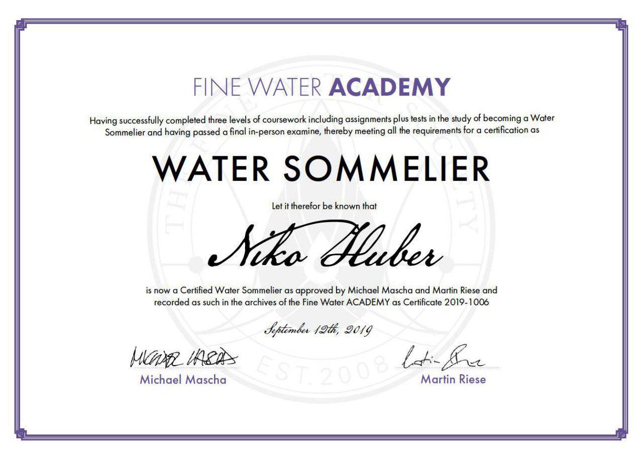 Niko Huber, večinski lastnik Cana Water, je pred kratkim uspešno prestal zadnjo stopničko v izobraževanju in si tako uradno pridobil naziv vodni somelje, s čimer se je pridružil ozkemu krogu posameznikov na svetu, ki se lahko pohvalijo, da so vodni someljeji.